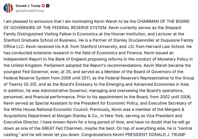 凱文·沃什(Kevin Warsh)對加密貨幣有何看法?(中央選角) twitter.com/EleanorTerrett/sta...