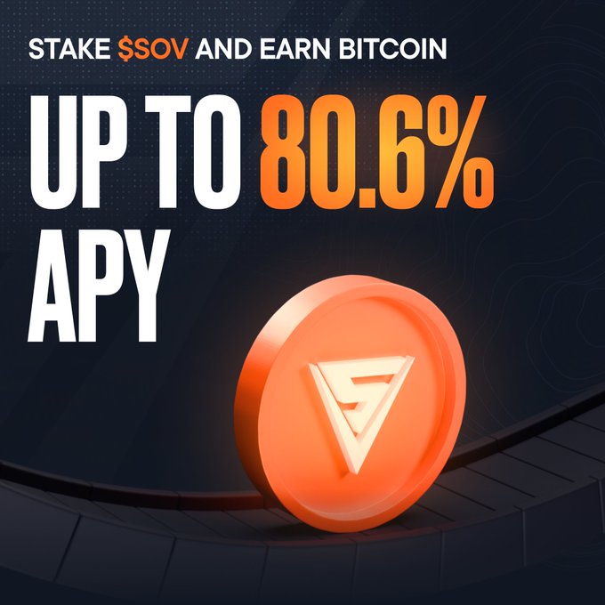 80.6% 年利率 • 賺取 $BTC • 額外加倉 $SOV • 打造比特幣最大的 DeFi 平臺 質押 → 賺取收益 → 共創未來 ⬇️ sovryn.app/earn/staking