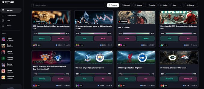 Myriad 的使用者介面簡潔得令人驚艷。 大多數預測市場平台都像是工具…而 Myriad 的介面設計得非常用心。 一切都流暢、易讀,導航極為便利。 看得出來 @MyriadMarkets 真的很注重用戶體驗。 在這個領域,能見到如此精緻的產品實屬難得。 必須給團隊點贊,他們的使用者體驗做得太棒了。