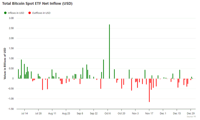 現貨比特幣 ETF 經歷了有史以來最大的資金流出,11 月和 12 月共損失了 45.7 億美元。