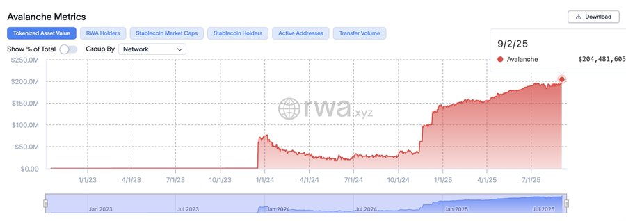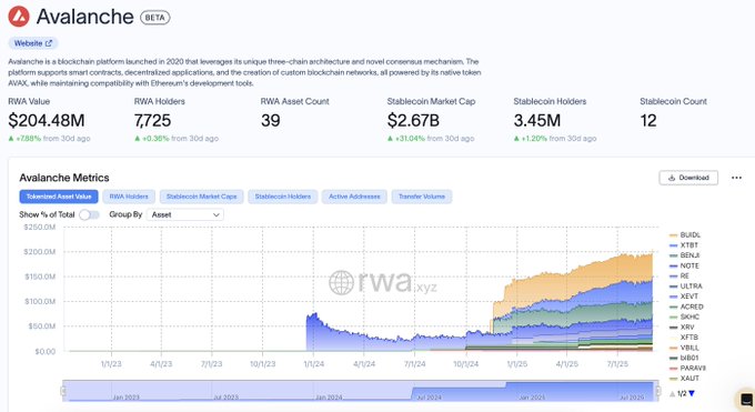 AVAX上的 RWA 價值首次超過 2 億美元。 成為全球資產機構規模代幣化最值得信賴的目的地之一。 🔺 這是資本在鏈上連接現實世界價值的地方。 twitter.com/BlizzardFund/statu...