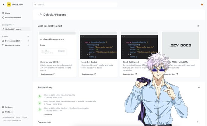 您現在擁有一個端到端加密的代理上下文和協作空間 > ddocs.new > 設置 > 啟用開發模式 > 生成 API 密鑰 > 在本地或雲端設置 > 連接您的 LLM twitter.com/laszlo000/status/2...