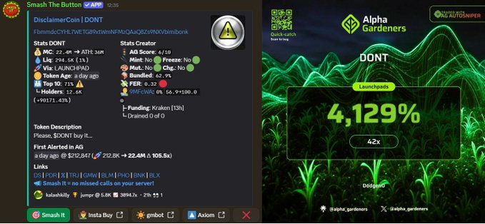 我們向代幣持有者致歉,因為我們過早地買入了像 $DONT 這樣的代幣🧵 很遺憾您的收益過大,不得不提前出售…… 如果您繼續持有,您將額外獲得 12.5 萬美元的收益。 使用自動化的 @agsniperbot,也能像這樣搶購代幣——完全免費 ⤵️