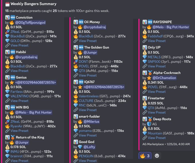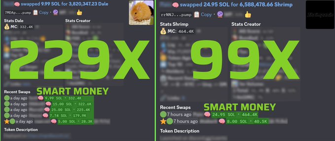 使用我們的「上帝模式」追蹤Solana鏈上最聰明的錢包,該模式捕捉到了: $DALE = 229x 💰 $SHRIMP = 99x 💰 持有者可以使用我們的自動化 @agsniperbot 來購買此管道的所有選擇權,無需在線,這樣他們就不會錯過任何機會👨🌾
