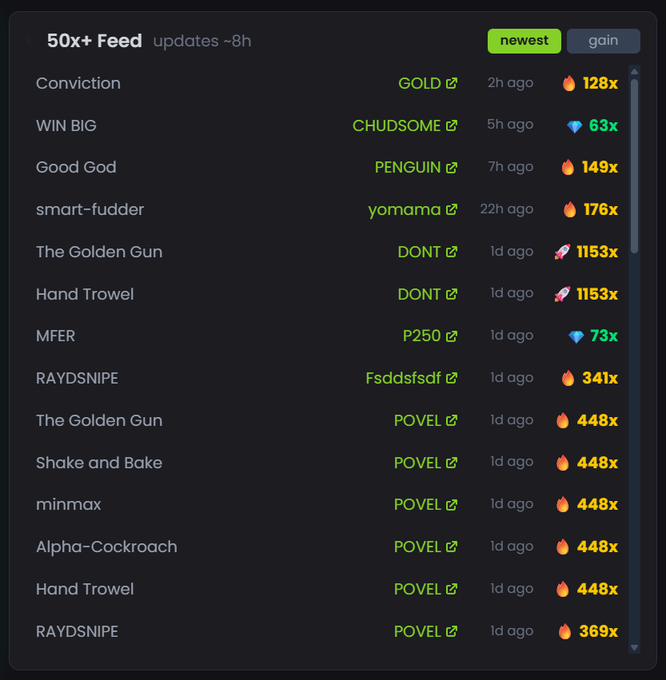 想體驗使用 @agsniperbot 進行自動交易並搶購以下代幣嗎? $YOMAMA = 176 倍 💰 $PENGUIN = 149 倍 $GOLD = 128 倍 $CHUDSOME = 63 倍 所有交易均基於我們回測市場中經過驗證的預設。歡迎體驗我們的免費模式,人人皆可參與 ⤵️