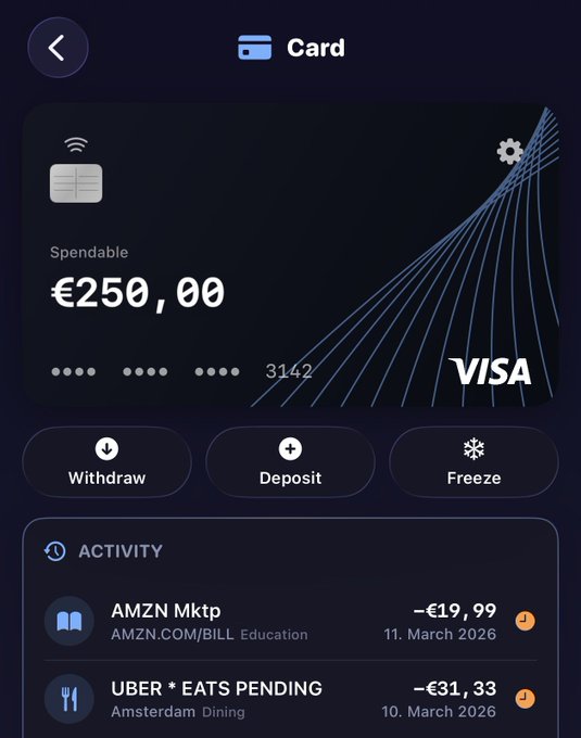 🥧 Moonpie 現已推出 Visa 卡 💳 自保。支持 Apple Pay。由 @gnosispay 提供技術支持。 • 使用 $DUSK 充值 • 在任何接受 Visa 卡的地方付款 • 使用 Apple Pay 輕觸付款 一個應用即可搞定 Piewallet、通過 @sozu_dusk 進行質押、銀行賬戶,現在又多了一張借記卡。敬請期待下次更新 👀