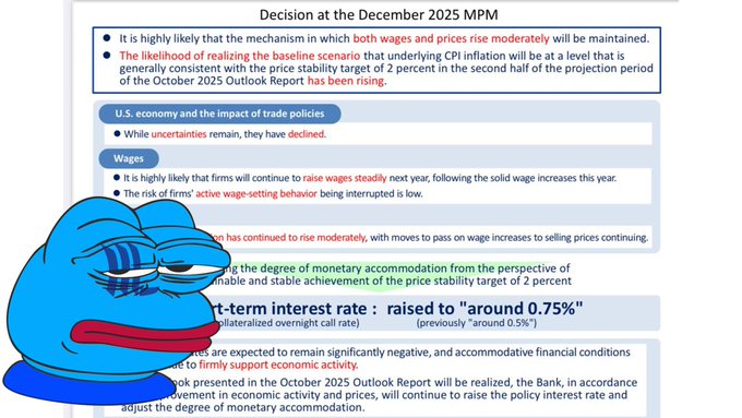 根據《日經新聞》報道,日本央行預計將自1月以來首次升息,將政策利率上調25個基點至0.75%,此前為0.50%。該決定預計將於12月19日公佈,屆時日本利率將達到近30年來的最高水準。