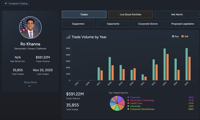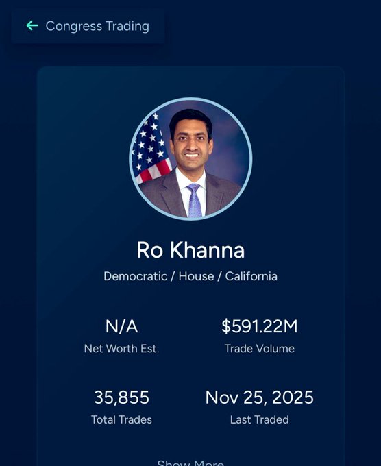 需要國會有人推動 2026 年《真相法案》: 對那些虛偽的超級富豪交易員徵稅 對價值超過 500 萬美元的議員的所有交易額徵收 90% 的稅(用於教育、退伍軍人、醫療和住房) 光是羅納一人就能為美國人民帶來 5.3 億美元的收益!