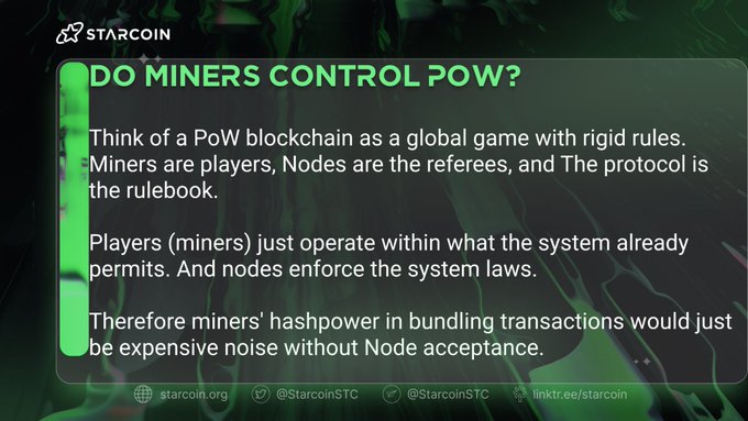 用 Starcoin 打破迷思💥 大多數人認為礦工控制工作量證明(PoW)鏈 但事實遠不止表面理解那麼簡單。