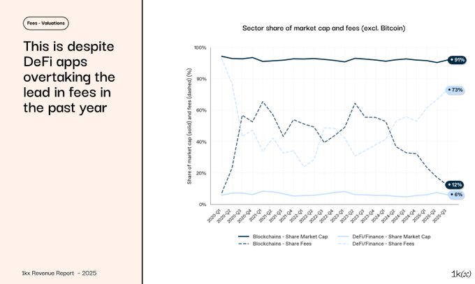 2025 年系列最重要的圖表: 連鎖店的造價更高,但它們的年利潤卻逐年下降。 DeFi 的市值僅佔區塊鏈總市值的一小部分,但獲利能力卻很強。 市場會重新定價。 Alpha新聞。