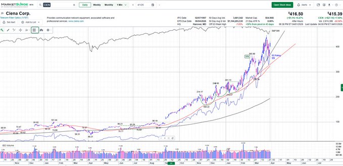 請注意,一些小的挫折幾乎沒有影響到光學領域的許多股票,例如 $CIEN 這樣的股票依然相當強勁,迄今為止趨勢並未受到太大影響。 @IBDinvestors @marketsurge 這值得關注,但電信光纖領域仍然是市場中最看漲的領域之一,迄今幾乎沒有疲軟跡象。