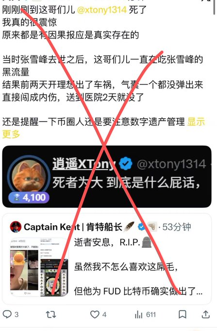 Tony沒有死,目前人在醫院接受治療,在搶救,要送果籃看望@xtony1314 的可以聯繫我