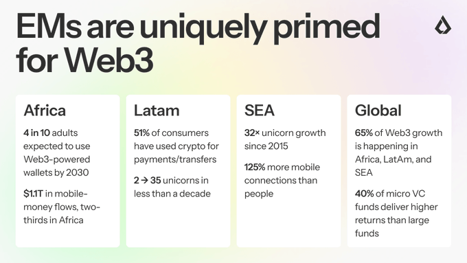新興市場不是擴張策略,而是試驗場。 這些數字只是反映了已經發生的事情:在電子市場中,web3 符合已經成為常態的行為。 非洲、東南亞和拉丁美洲的創辦人正在開發日常使用的產品,但創投的取得率仍低於 5%。 Lisk EMpower 基金正是為了彌補這一缺口而設立的。 了解更多 👉 lisk.com/fund