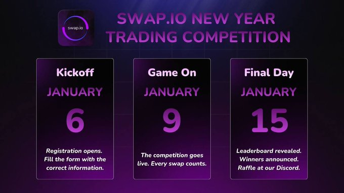 @swapdotio空投更新 📷 交易錦標賽 http:/Swap.io ($1,000) 提高您在 http:/Swap.io 上的音量,為自己贏得獎品,也為社群贏得榮耀! 行程 1月2日至1月6日:註冊(填寫Google表格)。 + docs.google.com/forms/d/e/1FAI...…