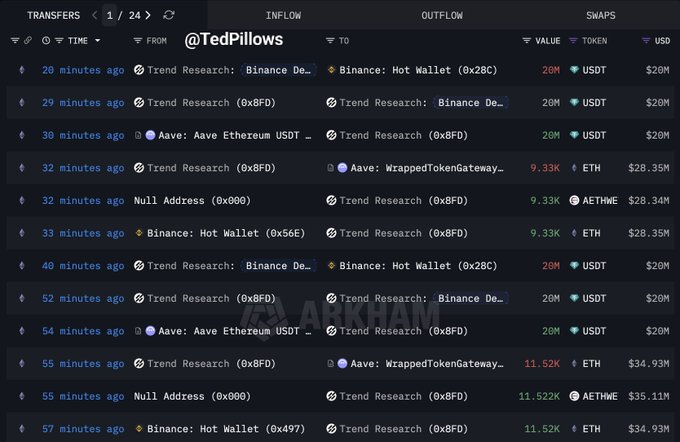 Trend Research 今天購入了價值 63,280,000 美元的以太坊(代碼:$ETH)。 自去年 11 月以來,他們已累計購入價值 1,800,000,000 美元的以太坊。