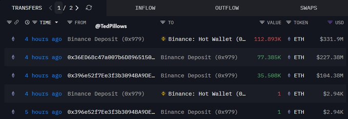 比特幣內部巨鯨今天向幣安存入了 331,900,000 美元(代碼:2024111120230)。 兩週前,他還在呼籲ETH價格達到 4400 美元。