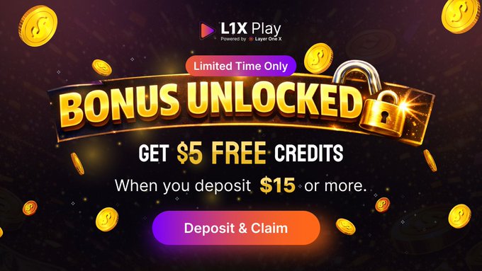 🔓 獎勵已解鎖 你的下一場勝利已經領先一步! 下次充值 15 美元即可領取 5 美元免費積分。 計時器從你進入競技場的那一刻開始。不要讓時間耗盡!⏱️ 立即在 L1X Play 提升你的餘額。 play.l1xapp.com #L1X #Web3Gaming #PlayToEarn #Bullish