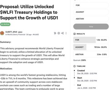 $WLFI 發起了一項投票,結果支持他們部署高達 1.3 億美元來支持 1 美元的加密貨幣。 WLFImeme寶庫: twitter.com/AxisAce101/status/...