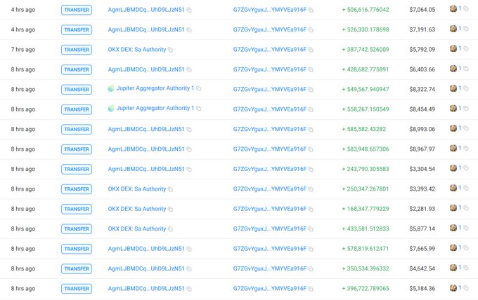 #1coin @1coinonsolana 第八次更新 在過去 4 小時內,一個新的巨鯨錢包以 93.5 萬美元的價格購買了 655 萬枚 #1coin。 買盤主要透過 Jupiter 和OKX渠道分散,顯示買盤以執行為導向,而非散戶波動。 皮夾位址:G7ZGvYguxJrN1JZCembeu72fhupk5q8ifvYMYVEa916F twitter.com/StalkHQ/status/200...