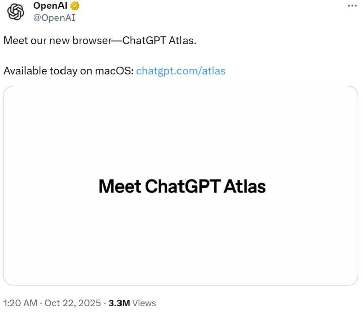 剛剛,OpenAI發佈AI瀏覽器ChatGPT Atlas,基於Chromium