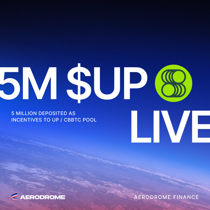 Superform獎勵已到帳✈️ 500萬枚 $UP 已存入Aerodrome的UP/cbBTC池作為投票獎勵。 成為veAERO投票者,立即開始賺取獎勵。 twitter.com/AerodromeFi/status...