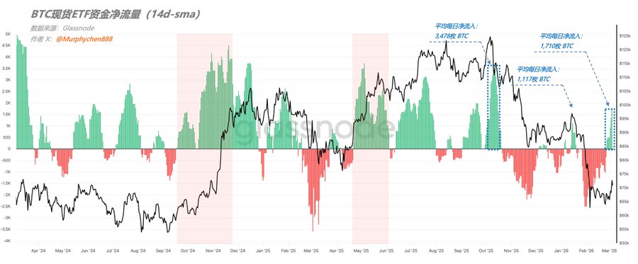 根據URPD數據顯示,有 171w 枚BTC在 $63,000 - $68,000 區間發生了換手,而就在1周前該區間的累計籌碼還只有153w枚,意味著短短7天時間,多頭在這裡承接了18w枚BTC。
