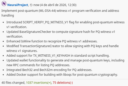 🔬測試後量子位址 我們已為 Neurai 測試網添加了支援後量子位址的初始程式碼,該位址將免受未來來自量子電腦的攻擊。 這是初始版本,很快就會整合到各種錢包中,以便與測試網和資產一起使用。它還將透過我們的 Arduino 庫整合到 ESP32 中。 我們的 Arduino 庫:mldsa #Neurai #XNA $XNA #PQ #ESP32 twitter.com/neuraiproject/stat...