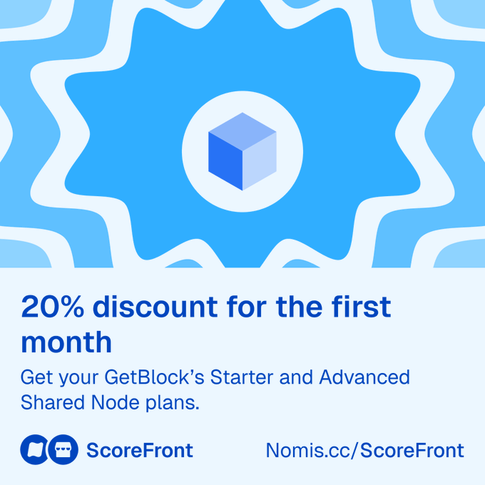 1/2 我們與 GetBlock 合作,為 Nomis 用戶提供首月 Starter 和 Advanced 共享節點套餐 20% 的折扣: 👉 nomis.cc/ru/score-front/getblo...… 要享受折扣,用戶需要: - 在平台上註冊:account.getblock.io/sign-up - 透過聯絡表單聯絡支援團隊:getblock.io - 提供優惠碼 Nomis20。