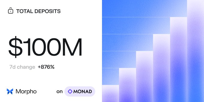 Morpho成為Monad平台上首個存款額突破1億美元的協議。 恭喜 @morpho、@steakhousefi 和 @withAUSD 團隊在主網上線不到 4 週的時間內共同達成這一里程碑! 更高 twitter.com/0x_Abdul/status/20...