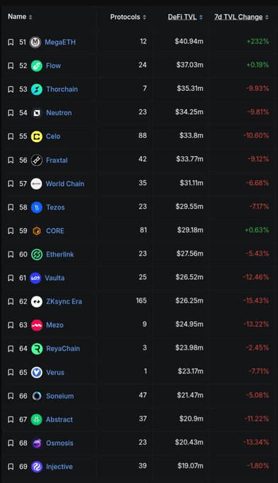 作為Cosmos 的粉絲,看到一條新鏈(MegaETH)在不到一天的時間裡就擁有比Osmosis、 Neutron或Injective更高的 TVL,這真的令人沮喪。 它們的 TVL 甚至比Osmosis和Injective加起來還要多。 好好想想。