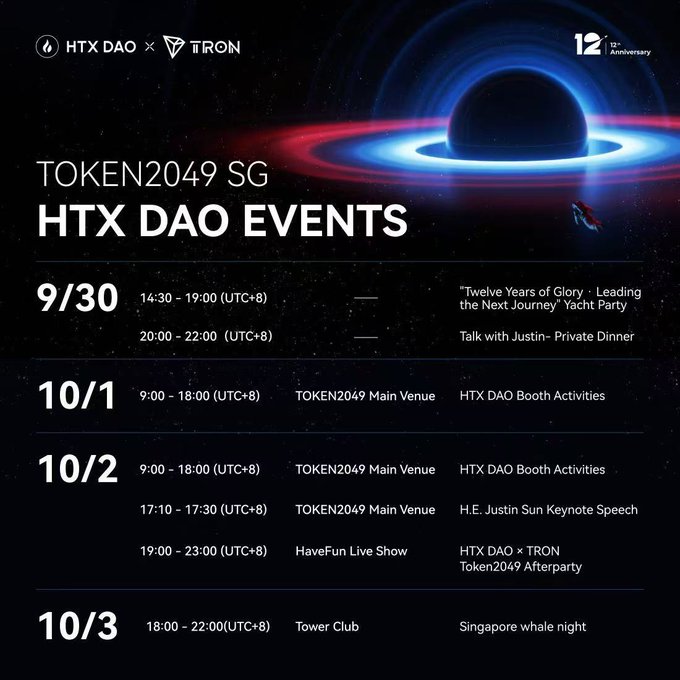 TOKEN2049 新加坡 | #HTX_DAO 日程安排 🏁 保存這份快速指南,來打個招呼吧!(所有時間均為世界協調時間) #TOKEN2049 #HTX