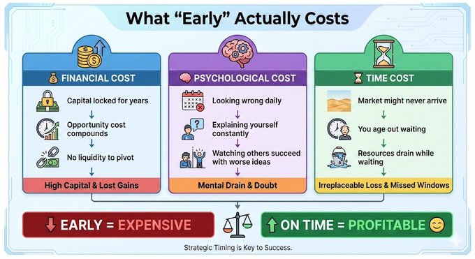 @arndxt_xo 剛剛發佈了他對 2025 年加密貨幣市場的回顧報告。 其中最讓我印象深刻的一句話是:“即使你判斷正確,如果入場過早,仍然可能虧損。” 我一直在從金融和創作兩個角度思考這個問題。 1. 金融視角 入場過早就等於判斷錯誤,而且代價更高。你可以準確預測市場崩盤,但如果你在崩盤發生前兩年做空,那麼在你被證明正確之前,你已經破產了。 記住,市場非理性持續的時間可能比你保持償付能力的時間更長,這是一條生存法則。時機永遠是制勝的關鍵。 2. 創作視角 我見過一些創作者在 2020 年談論人工智能,當時無人問津;而另一些創作者在 2023 年帶著同樣的內容出現,卻一炮而紅。 入場過早意味著你要付出所有努力。別人搶走了功勞,所以內容創作的時機至關重要👇 • 太早 = 無人問津 • 太晚 = 競爭過於激烈 • 時機恰當 = 成功 你看,僅僅正確是不夠的。你需要…… 1. 正確的洞察力 2. 恰當的時機 3. 堅持到時機成熟的能力 大多數人失敗在第3點。他們雖然正確且早,但卻無法堅持足夠長的時間,最終放棄。然後,其他人帶著同樣的想法在恰當的時機出現,並最終獲勝。 在金融領域,不要把所有賭注都押在正確上,而是要押注於生存,直到最終證明自己是對的。 在內容創作領域,不要只追求真理,而是要追求人們現在就想聽到的內容。 記住,你可以播種,但如果你需要食物,就不能等五年才收穫。正確且早是昂貴的,而把握時機才是盈利的。 閱讀下面的全文。我認為它值得你花時間閱讀。 twitter.com/YashasEdu/status/2...
