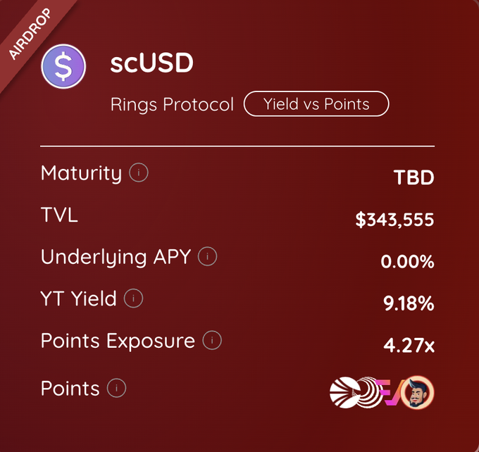 一種類固醇版穩定幣! 鑄造PT-scUSD並獲得4倍槓桿點數! 1⃣ 51倍 <@SonicLabs> 點數 2⃣ 205倍 <@Rings_Protocol> 點數 3⃣ 4倍 <@veda_labs> 點數 4⃣ 341倍 <@StableJack_xyz> 折扣券
