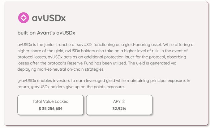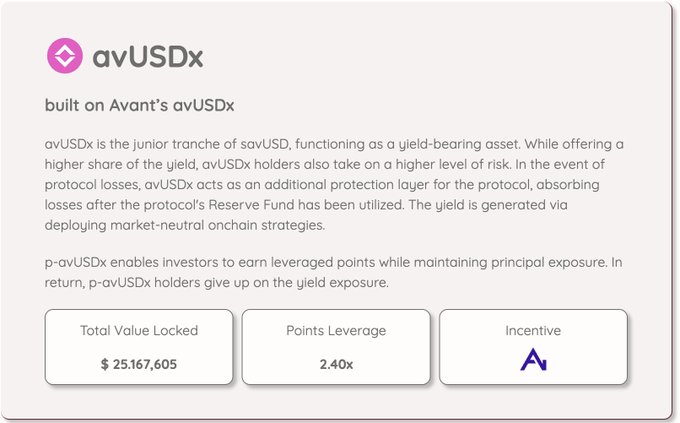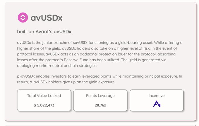 @avantprotocol 提供 28 倍積分! 您可以存入 $avUSDx,在保證金不變的情況下,賺取 28 倍積分,同時還能獲得抵押品的額外收益。 千萬不要錯過這個機會!