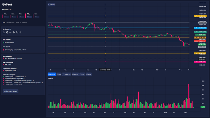 DYOR 市場掃描: BTC、 USDT和 PERP 交易對普遍承壓。更高時間框架顯示出比日內更深的疲軟態勢。目前的反彈很可能只是市場噪音。🐻📉