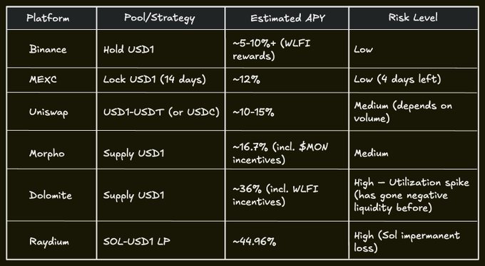 我一直持有 #USD1 而不是USDT,所以我整理了目前用 USD1 挖礦最有吸引力的礦池和策略。 如果你手裡有1美元,這正適合你👇