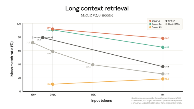 這非常強大 由於可以導入完整的代碼庫,因此可以減少編碼錯誤 Openclaw 壓縮頻率更低(佔用更多內存) 性能遠超所有其他 Frontier 模型 twitter.com/chooserich/status/...