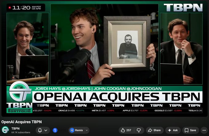更進一步說,TBPN 模式是無法複製的。 他們首先是商人,而不是「內容創作者」。 他們或許不擅長內容創作,但非常擅長人脈拓展,執行力更是出類拔萃。 每天堅持不懈,效果永遠勝過單憑天賦。 twitter.com/chooserich/status/...