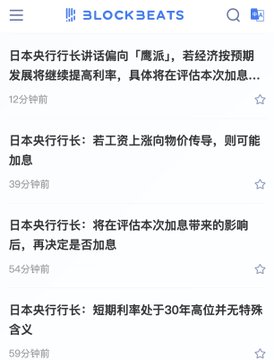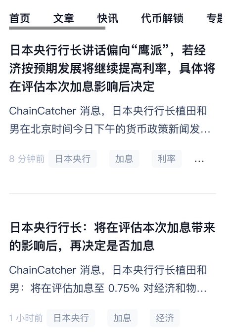 今天下午的神奇現象:幣圈媒體比日本傳統媒體,都還關注日本央行加息狀況。。