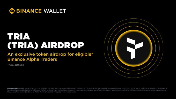 Binance Alpha將於 2 月 3 日率先推出 Tria (TRIA)。 符合資格的用戶可在交易開放後,前往Alpha Events 頁面使用幣安Alpha積分領取空投。更多詳情即將公佈。 請持續關注幣安官方渠道,獲取最新消息。