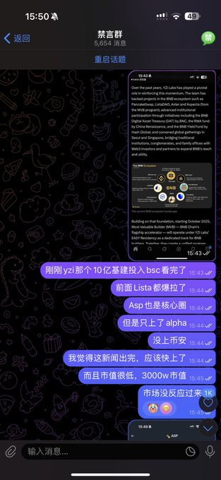 再想一下asp,多一層思考。 雖然是bnbchain重點項目,但是目前的行情已經集中在meme板塊上了,這時候並沒有更多資金去推動其上漲,畢竟已經過了前面那個myx aster一個接一個拉盤的場面了。 這時候應該更專注meme板塊,至少現在大家共識是金,找大家喜歡的在情緒泡沫階段更重要。