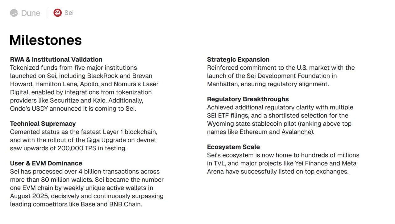 🔘RWA 和機構驗證:來自貝萊德和野村證券等主要機構的代幣化基金已在 Sei 上線