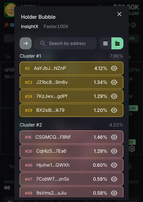 詐騙警報: $meow 出現在 bag 上,不是 @BlockchainDan 創建的那個,而是之後發佈的那個。 整個分發包由連接的全新錢包組成。 氣泡圖顯示多個 8% 的集群。bags 上只有一個 $meow。 詐騙:GigWsnk8BvdYKRQ5yQbUt6DGq9LGE9Y2J1D8i5hGBAGS