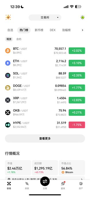 BTC突破70000 USDT,24H漲幅2.21%