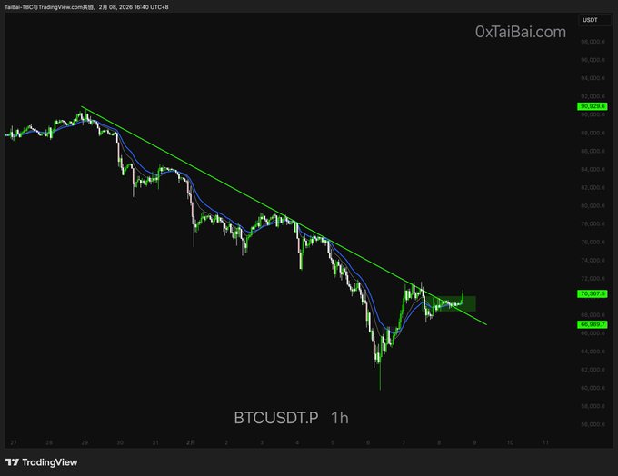 BTC 1H 趨勢線突破,再突破72k,75K就問題不大了 twitter.com/0xTaiBai/status/20...