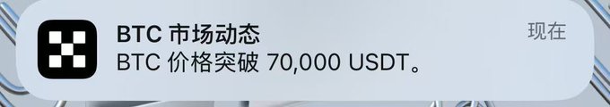 突發,牛回,比特幣突破70000大關