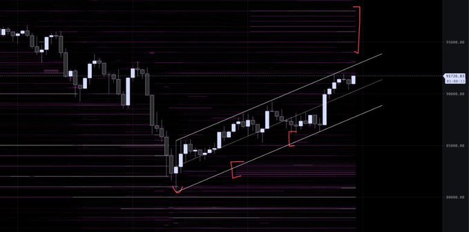 $BTC 這裡你可以清楚看到幣安是如何透過在熱力圖上擺放流動性來“驅動”價格的:這不是魔法,只是觀察他們在哪裡砌牆、哪裡撤牆,以及價格如何跟著這些牆跑。 每次價格下跌,他們就把掛單稍微往下移,順勢陪著跌。而一旦清理完畢,他們就開始撤掉下方流動性,同時在上方堆起買牆,把價格硬生生拉進多頭通道。 成交量的激增和低位的吸籌(你標紅的那些點)都證明這裡確實有操控的意圖。通道內的走勢非常乾淨,幾乎教科書級:每次回撥,下方區間就會有新的流動性支撐。 不過現在,我們已經來到H4級別的關鍵阻力位: 這裡掛滿了訂單,熱力圖頂端的流動性塊一眼就能看出來。這裡已經不是“開放區間”了:要突破必須有真量,否則很容易來個假突破,吸足流動性後再砸回通道底部洗盤。 總結一下: 操控痕跡明顯,通道很乾淨,現在正在面對H4上的第一道真牆。