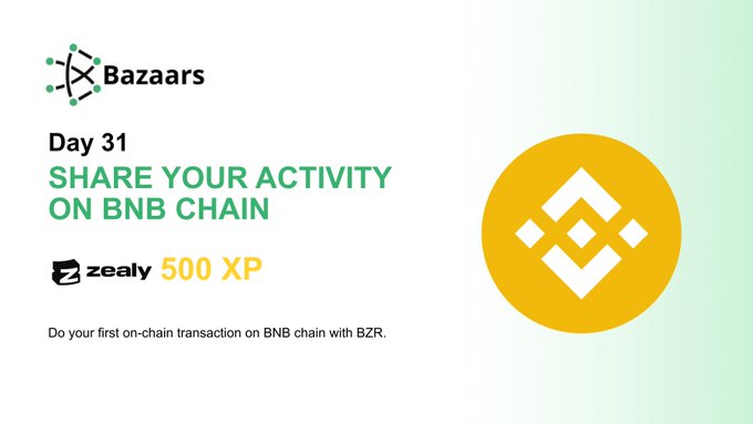 SAFU!$BZR 擴展到BNB鏈🟨 感謝 Bazaars 的各位成員,感謝你們在以太坊和Polygon上使用 $BZR 進行鏈上活動,保持了強勁的勢頭!現在是時候將它擴展到BNB鏈了。為了證明 Bazaars 代幣確實是一款 1 CA 的多鏈代幣,我們需要看到它在 BNB 鏈上的實際應用。 🎁 使用 $BZR 在BNB鏈上進行您的第一筆鏈上交易,即可領取您的 XP 獎勵。 🔗在此完成任務:zealy.io/cw/bazaarsbzr/questbo...…