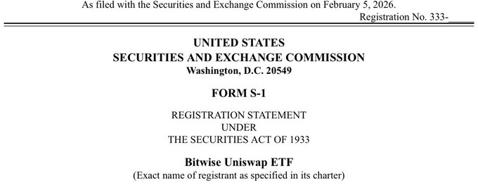 Bitwise 已提交以 Uniswap(UNI)為主題的 ETF S-1 註冊聲明,標誌相關產品進入更明確的合規申報流程。