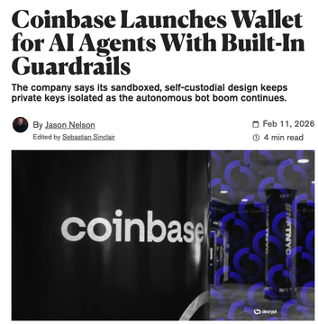 晨間一分鐘(2.12) 由 @yeet 提供支持 ⏰頭條新聞: -受強勁就業報告提振,主要加密貨幣價格反彈;BTC上漲1%至68,000美元 -貝萊德將其Buidl基金上線Uniswap,併購買UNI代幣 Coinbase推出了代理錢包,原生支援x402 分析師在今日第四季財報電話會議前大幅下調了COIN的目標股價。 -Lighter成為首個提供韓國股票的去中心化交易所,並首次推出資金費率返還政策 🌎 宏觀加密貨幣和市場 - 加密貨幣主要股在強勁的就業數據公佈後反彈;BTC上漲1%至67.9萬美元;ETH上漲1%至1984美元;SOL上漲1%至81.50美元;XRP上漲2%至1.39美元。 -STABLE(+14%)、H(+14%)和ASTER(+10%)領漲 -貝萊德透過UniswapX將其規模達21億美元的Buidl基金上線Uniswap ,併購買了UNI治理代幣,這是其首次購買DeFi代幣。 在一次聽證會上,議員們猛烈抨擊了美國證券交易委員會主席阿特金斯,指責他駁回針對幣安的訴訟並暫停對孫宇晨的案件。 Galaxy執行長Mike Novogratz在CNBC數位金融論壇上宣布加密貨幣的時代已經結束,並表示未來將是回報率「低得多」的風險加權資產(RWA)。 -由薩斯奎哈納銀行支持的貸款機構 BlockFills 暫停了存款和取款,理由是市場狀況不佳(外界猜測這與 10/10 事件有關)。 -分析師在周四公佈第四季財報前大幅下調了Coinbase的目標股價:摩根大通從399美元下調至290美元,Cantor下調至221美元,花旗銀行下調至400美元。 - 先前有報告指出Arkham情報的交易平台即將關閉,但現在該平台正在轉向去中心化模式。 -Aviva Investors(資產管理規模達3,450億美元)與Ripple合作,將傳統基金結構代幣化到XRP帳本上。 企業國債和ETF 週三,BTCETF淨流出2.76億美元,ETHETF淨流出1.29億美元。 memecoin追蹤器 -meme主要幣種漲幅顯著:Doge+4%, SHIB+5%, PEPE+5%,川普幣 +6%,PENGU幣 +8%,FARTCOIN幣 +4% -Pippin (+20%) 和 WhiteWhale (+28%) 領漲Solana板塊;HTC 股價飆升 80 倍至 600 萬美元。 💰 代幣、空投和協議追蹤器 Coinbase推出了Agentic Wallets,這是其首個針對人工智慧代理的錢包基礎設施,原生支援x402協議,並支援免gas費的Base交易。 GTE宣布與Layer Zero建立合作夥伴關係,共同建構其資金層Turbo。 Lighter成為首個提供韓國股票選擇權交易的去中心化交易所(DEX),並宣佈為選擇權交易者提供資金費率回饋。 Sui推出了基於Ethena的穩定幣eSui 🚚 NFT領域發生了什麼事? -NFT 領頭羊大多下跌;Punks 持平於 29.9 ETH,Pudgy 下跌 4% 至 4.18 ETH, BAYC下跌 2% 至 6 ETH;Hypurr 上漲 1% 至 482 ETH。 -Nacci Cartel 在 MegaETH 上以 0.24 ETH 的價格首次亮相。 Pudgy Penguins 與 Kast 合作推出的全新加密貨幣信用卡正式開放了候補名單。